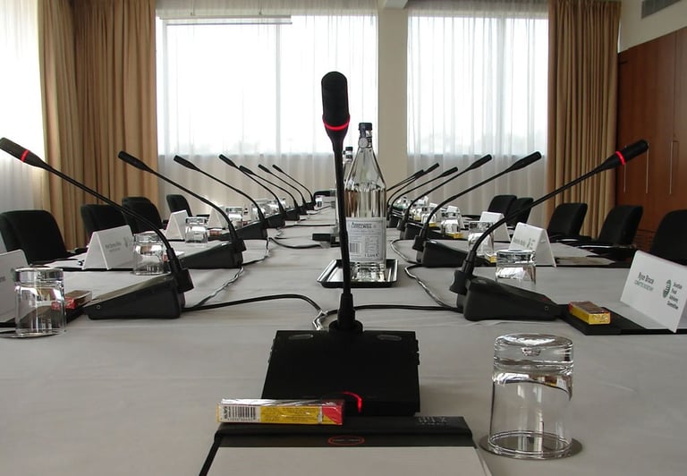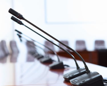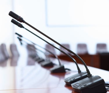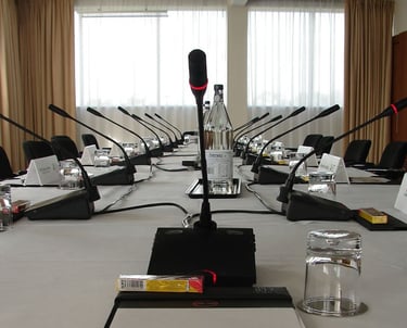 Aukštos kokybės įranga: naudojame modernias, profesionalias diskusines sistemas, kurios garantuoja aiškų garsą ir patikimumą.
