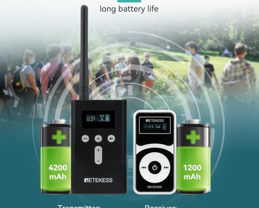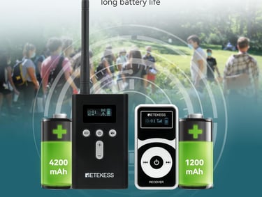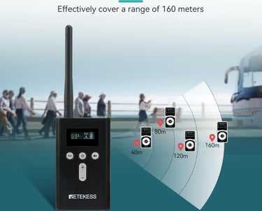 160m darbinis atstumas: didelė aprėptis individualiam klausymuisi ir patogiam socialiniam atstumui išlaikyti erdvioje turistinėje aplinkoje;